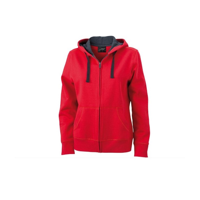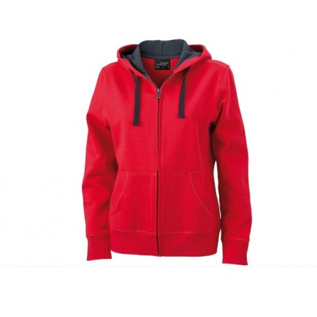 Czerwono-czarna bluza damska rozpinana z metalowym zamkiem błyskawicznym oraz kangurkowymi kieszeniami o dopasowanym kroju. Dwuwarstwowy kaptur na ściągaczu nie tylko wygląda efektownie, ale także chroni przed chłodem. Podszewka z miękkiego polaru gwarantuje przyjemne uczucie ciepła podczas chłodniejszych dni. Wykonana z wysokiej jakości materiałów, zapewnia komfort i ciepło.Dzięki zastosowaniu technologii Bionic-finish® ECO tkanina jest odporna na wilgoć i brud.